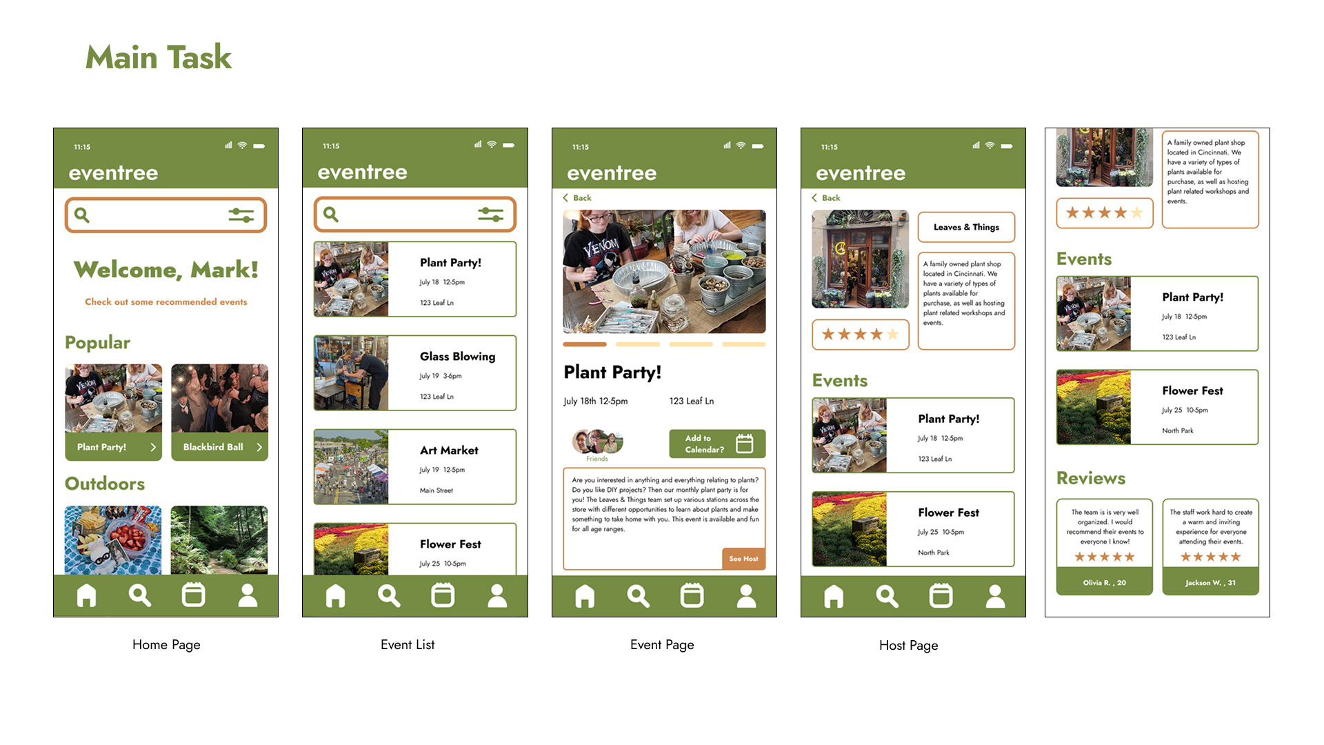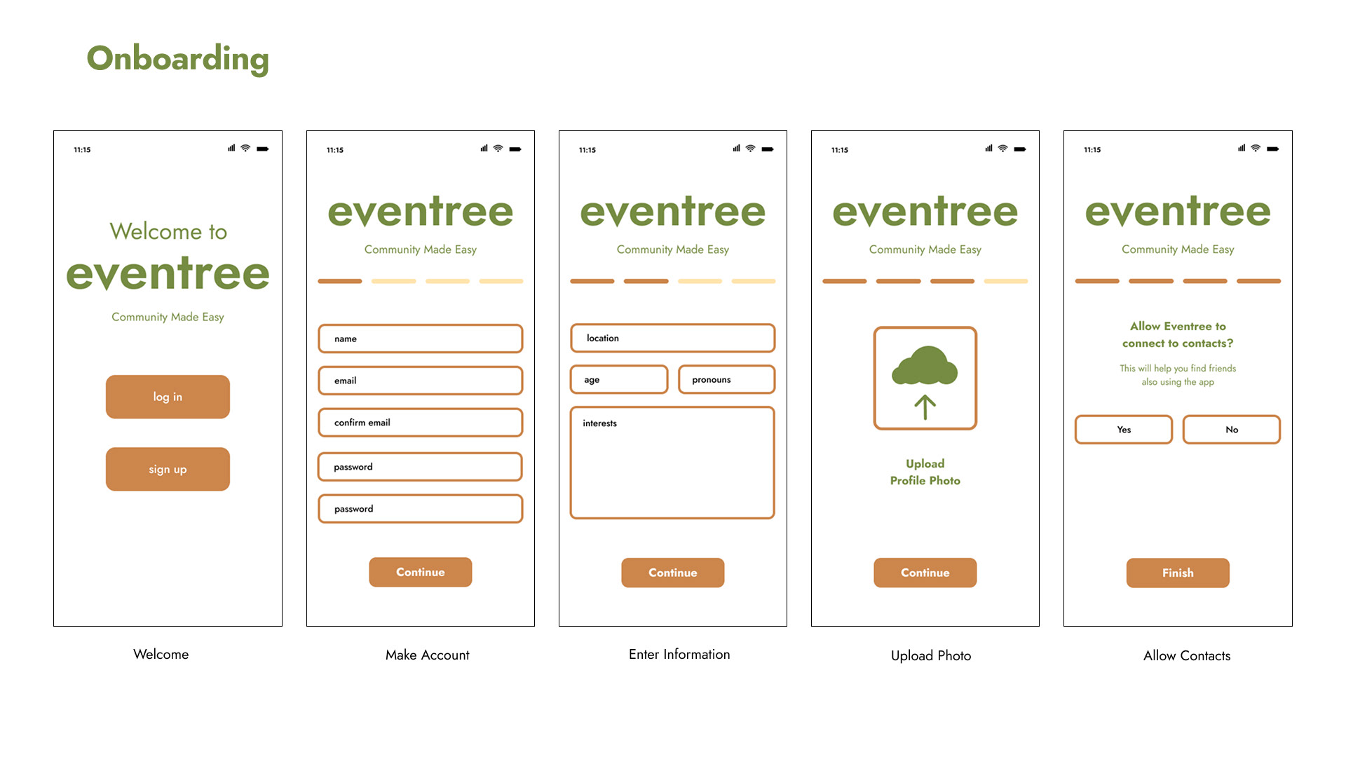 Eventree is an app that makes finding local events easy. Users will be able to enter their interests while making an account to better tailor their experience. Any event found on the app can be saved to the calendar that can be accessed at any time. The users can connect with friends to see who is going to events. They can also check reviews of the hosts of events.